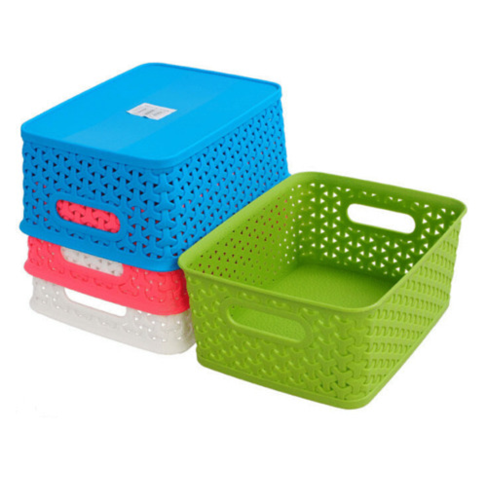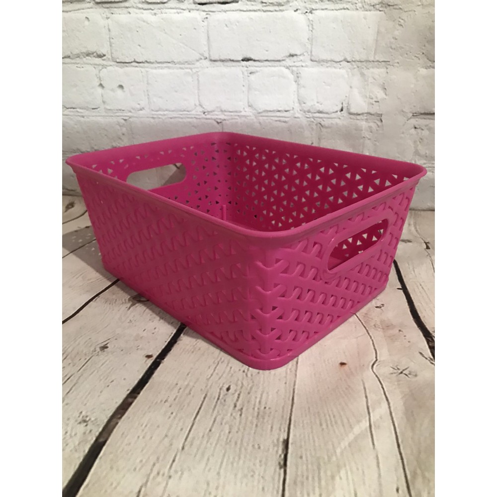 Зробити замовленняПластикова універсальна кошик для зберігання речей і дрібниць. малиновий