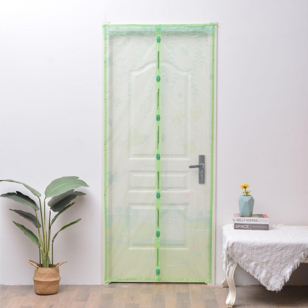 Дверна сітка-шторка чудово впорається з даним завданням, встановивши її на вхідні та балконні двері, ви перекриєте доступ докучливих комах всередину приміщень і насолоджуватиметеся вечорами з увімкненим світлом і вночі спати не прокидаючись від настирливого дзижчання. Сітка пропускає повітря, не затримуючи його, але не пропускає пух, дрібне сміття, яке може занести вітром. Якщо сітка довша висоти дверного отвору, можна підвернути її і закріпити. По краях полотен сітки розміщені магніти, які допомагають відкрити сітку і самі закриваються після того, як ви зайшли або вийшли. Вона щільно закриває отвір. Сітку розміщують на дверній рамі та за допомогою декоративних кнопок, які йдуть у комплекті, щільно прикріплюють її.