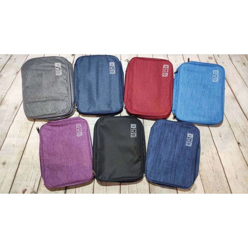 Органайзер виготовлений зі щільної тканини, яка захищає від потрапляння вологи та пилу. Він не великого розміру, при цьому дуже місткий і компактний, зручно брати з собою в подорожі. Усередині органайзер має відсіки для зберігання з гумками, що допомагає зручно розмістити всі кабелі, щоб вони не плуталися і були під рукою.