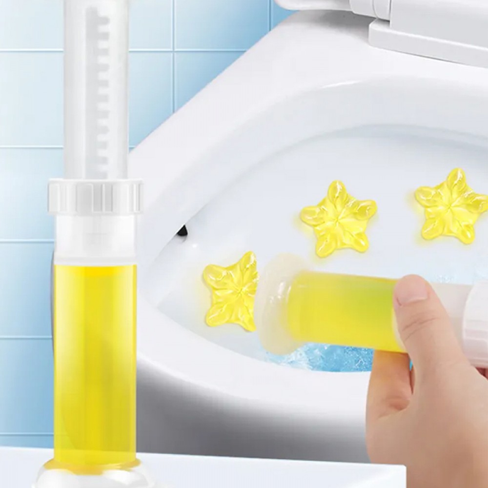 Чистота у ванній кімнаті, це насамперед чистота унітазу та свіжий та приємний аромат. Про чистоту унітазу вам допоможе подбати гелевий очищувач з дозатором. Він добре очищає та дезінфікує унітаз, попереджає утворення нальоту, іржі та пожовтіння. При кожному змиванні по всій кімнаті поширюється приємний та свіжий аромат. Також освіжувач для унітазу досить економічний. Шприц містить 12 аплікацій, яких вам вистачить на 12 тижнів, тобто 1 аплікація на тиждень. Достоїнства: Добре очищає і дезінфікує. >- Вистачає на велику кількість змивань.