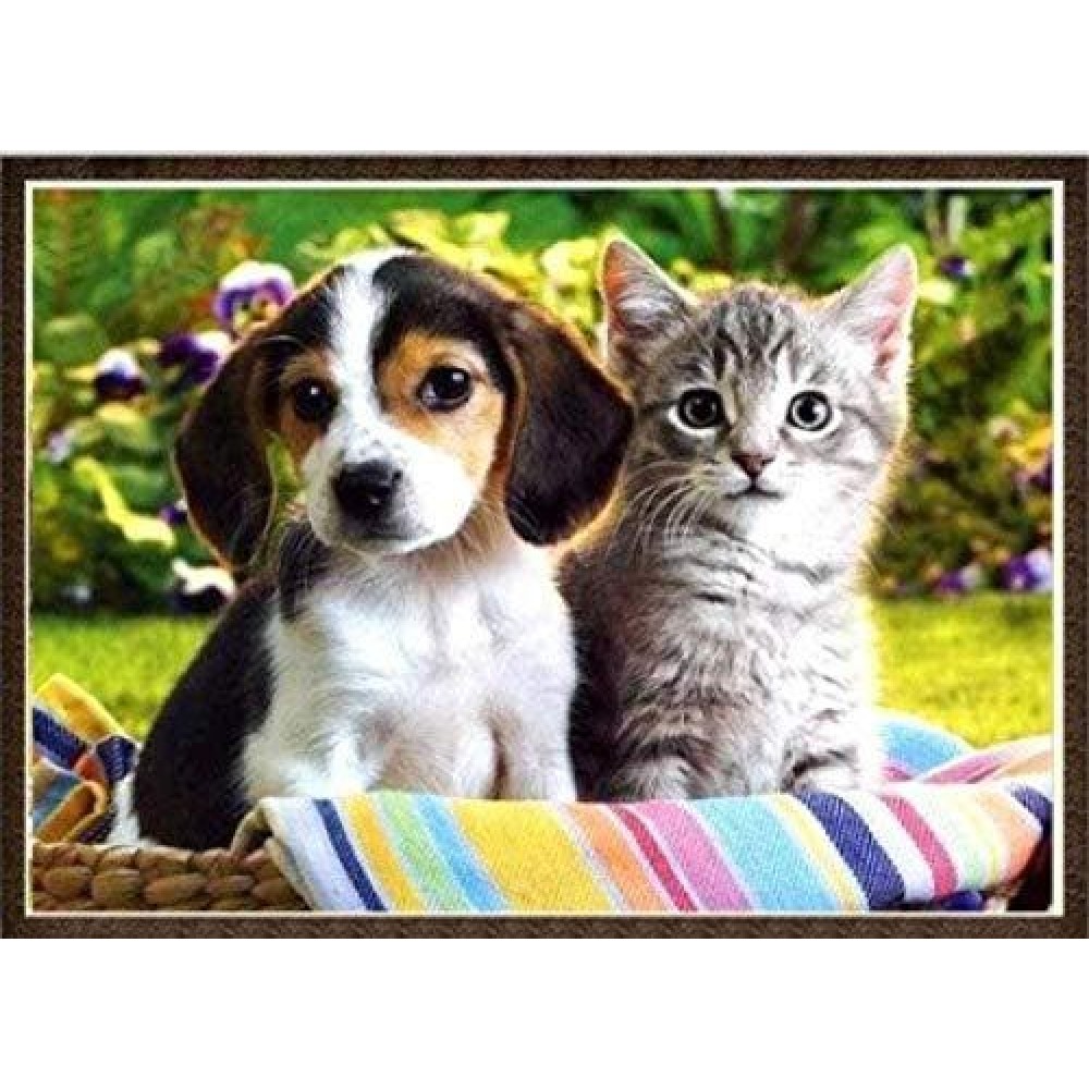Зробити замовленняАлмазна мозаїка "Кошеня та цуценя", картина стразами з рамкою. Глянцева. 30*40 см