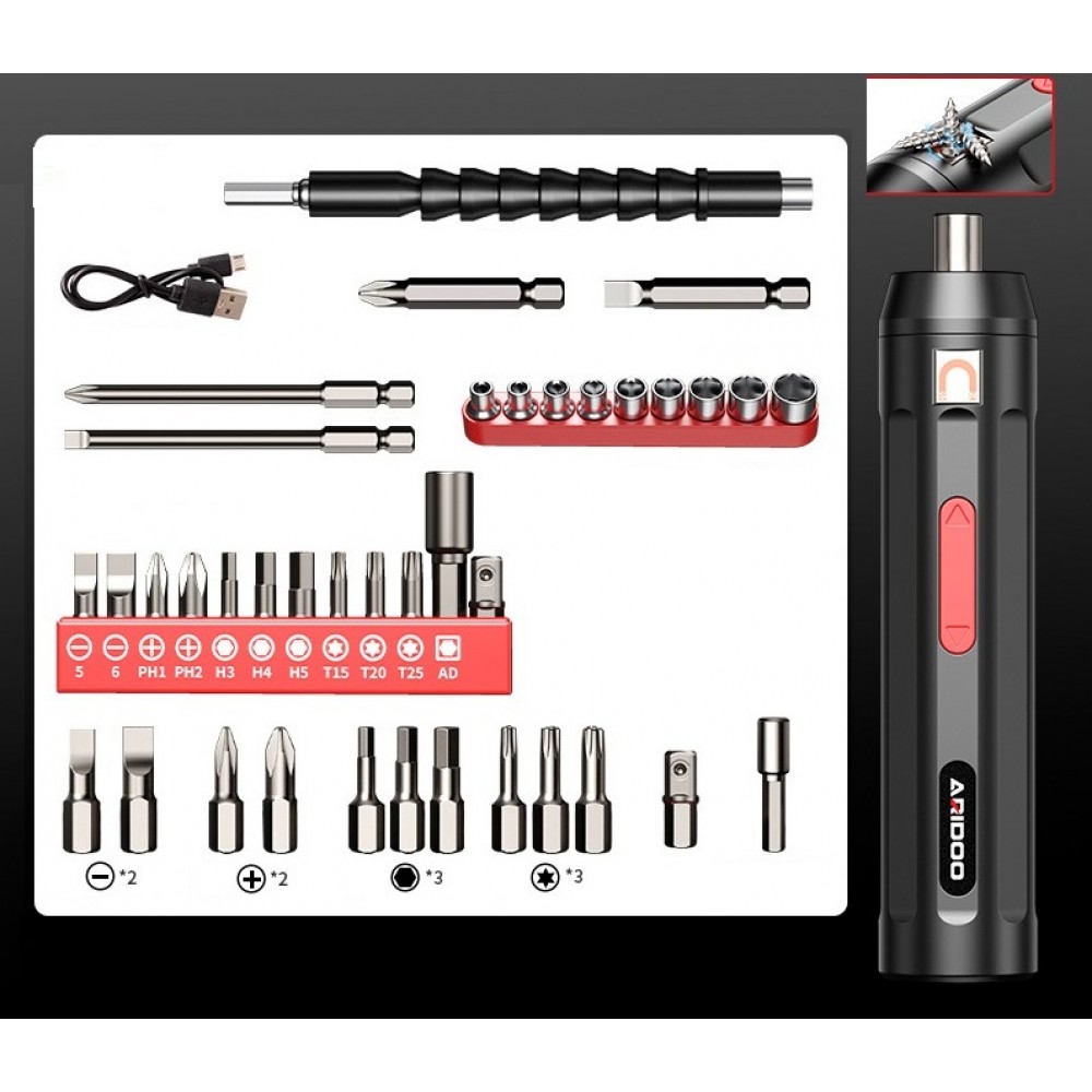 Зручна електрична викрутка ARIDOO — універсальний інструмент для швидкого складання меблів, дрібного ремонту та роботи з різними кріпильними елементами. Потужність 8,8 Вт забезпечує стабільне обертання, а магнітний тримач фіксує біти, запобігаючи їх випаданню під час роботи. У комплект входять різноманітні насадки, що дозволяють виконувати широкий спектр завдань вдома і в майстерні.