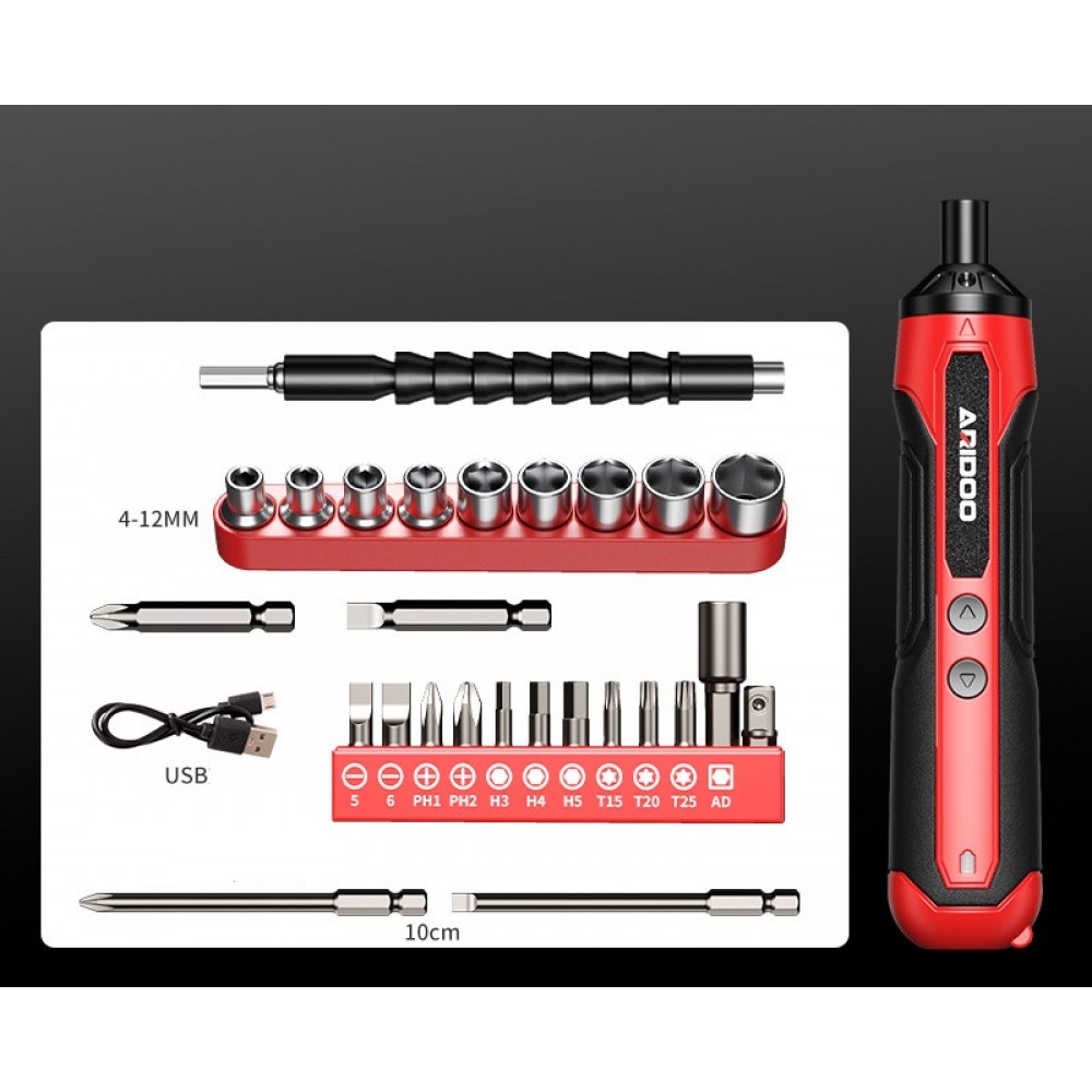 Зробити замовленняЕлектрична магнітна викрутка ARIDOO з комплектом універсальних біт і насадок, потужність 9.8VF