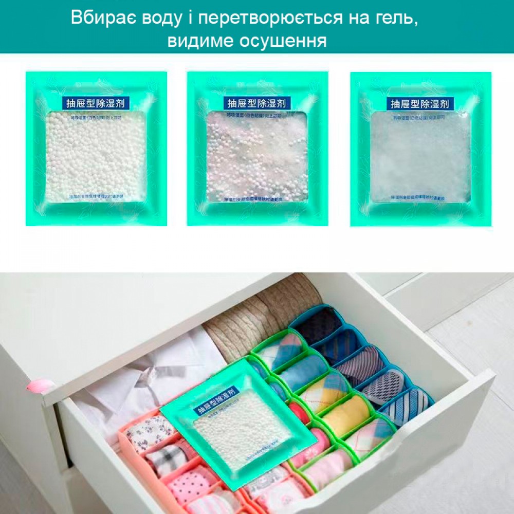 Такий вологопоглинач допомагає підтримувати сухість і чистоту в будинку, захищаючи речі і поверхні від впливу вологи.