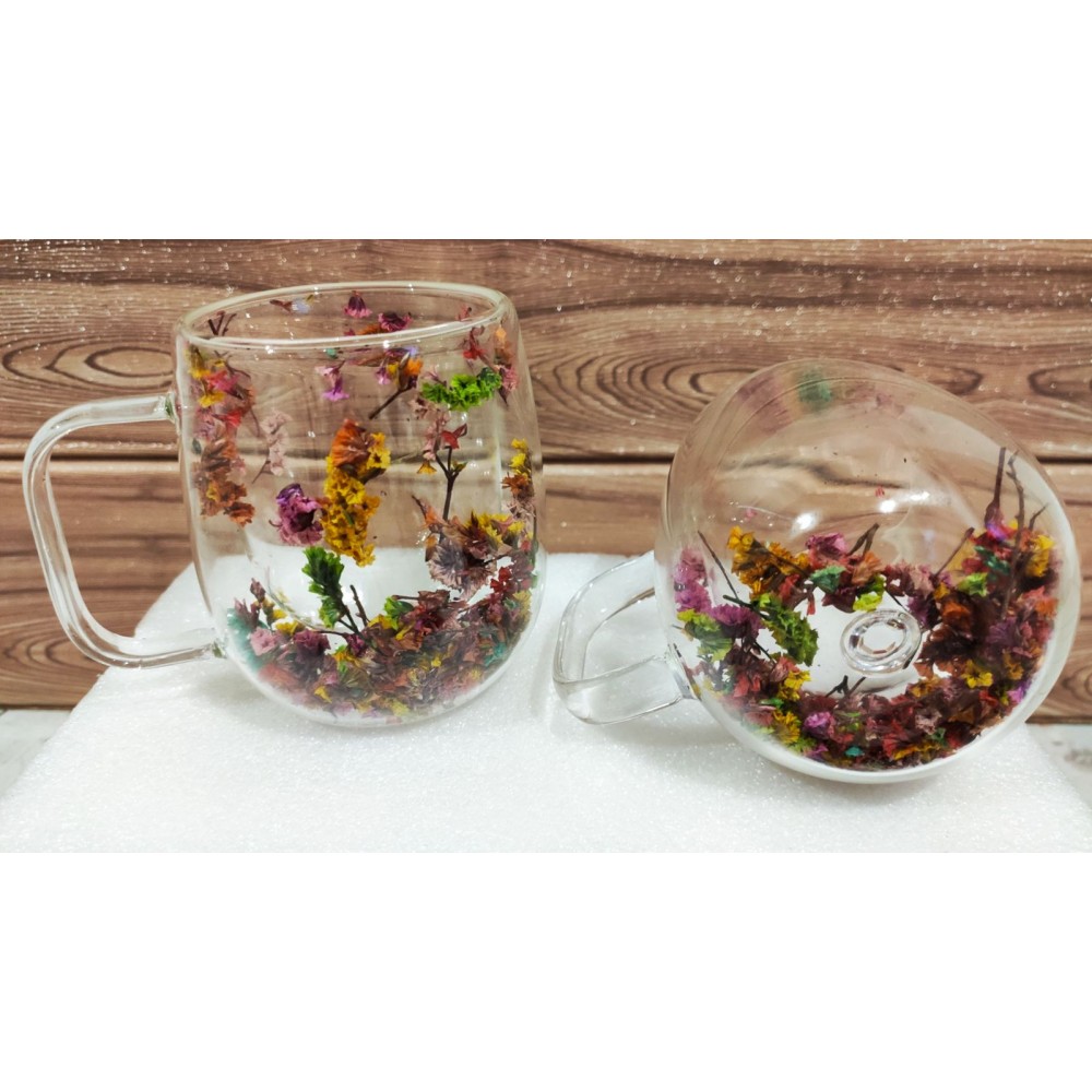 Зробити замовленняНабір скляних чашок з подвійними стінками, прикрашені сухоцвітами різнобарвними, 250 мл