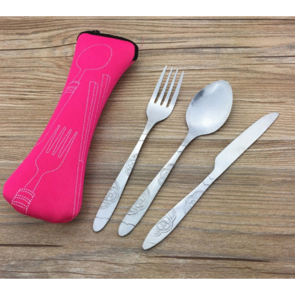 Оформить заказНабор столовых приборов 3 в 1 + чехол. Малиновый