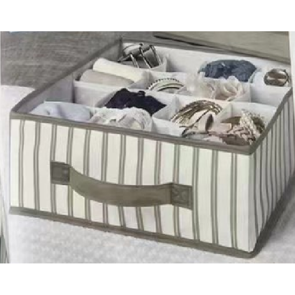 Оформить заказОрганайзер для хранения белья на 16 секций с крышкой. Бежевый в полоску