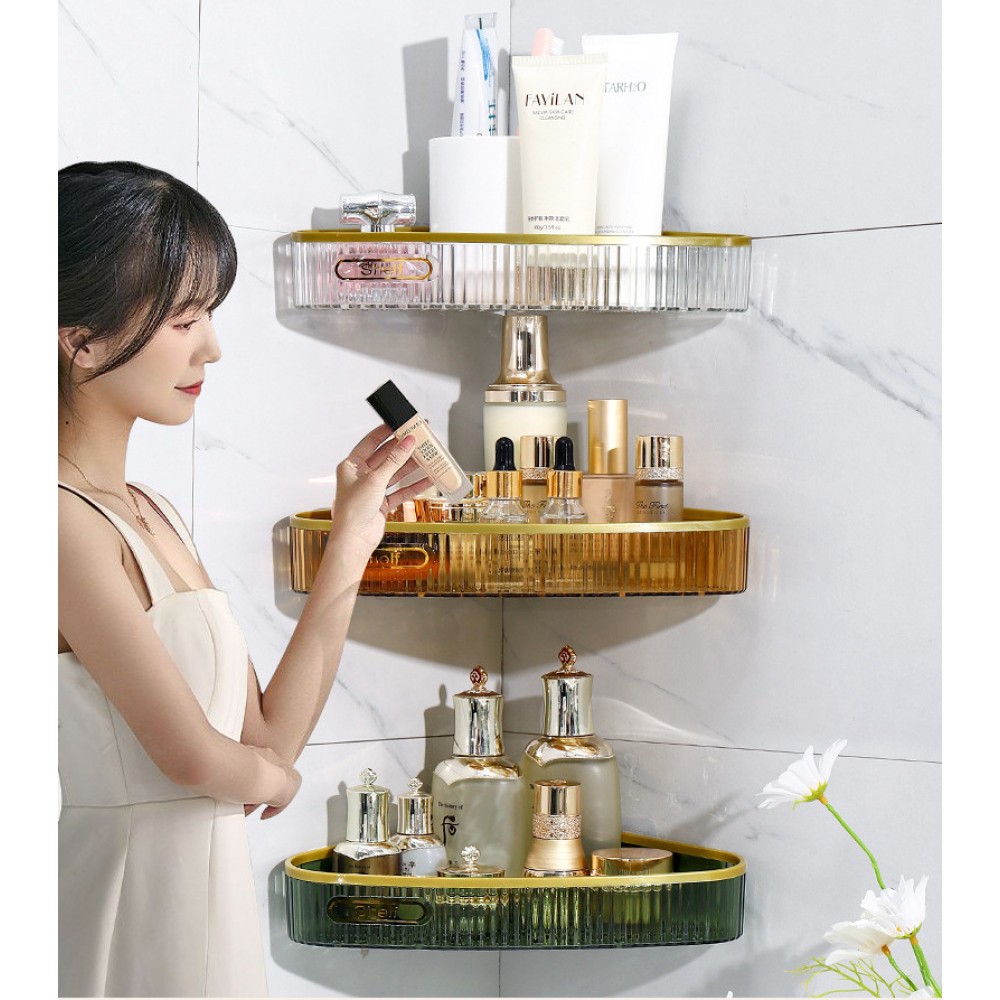 Чтобы красиво и практично разместить все моющие средства в ванной комнате, используйте угловую пластиковую полочку. Она практичная и современная. Красивый, стильный и лаконичный дизайн подойдет к любому интерьеру.