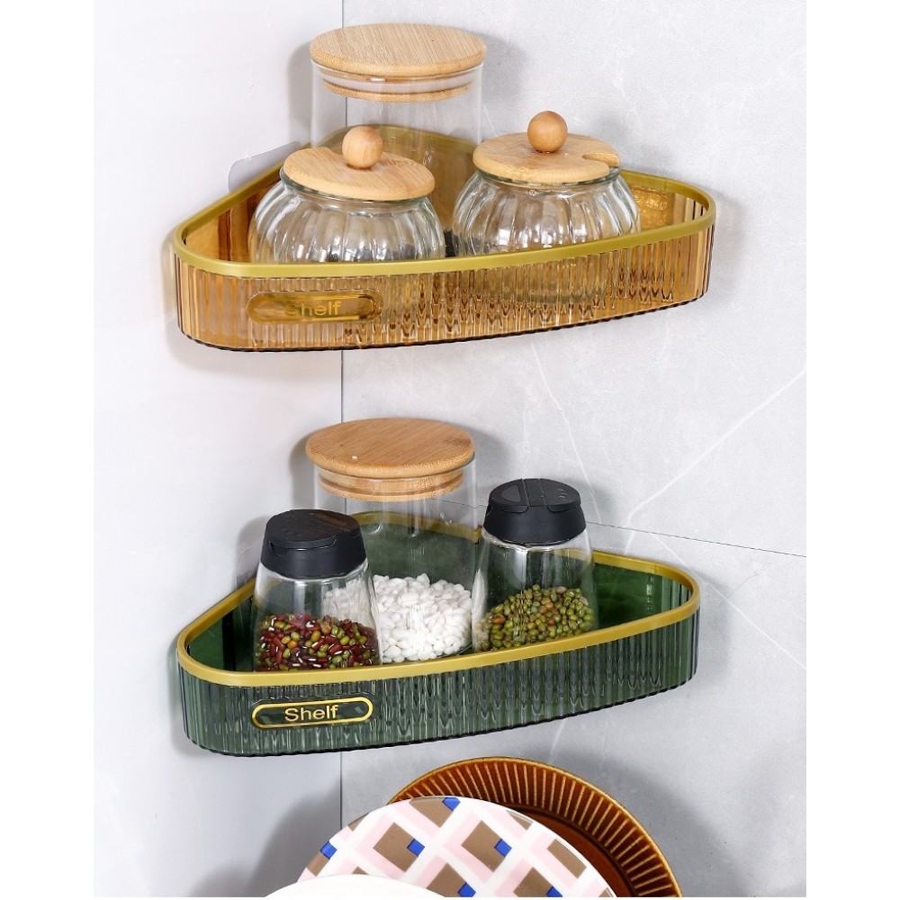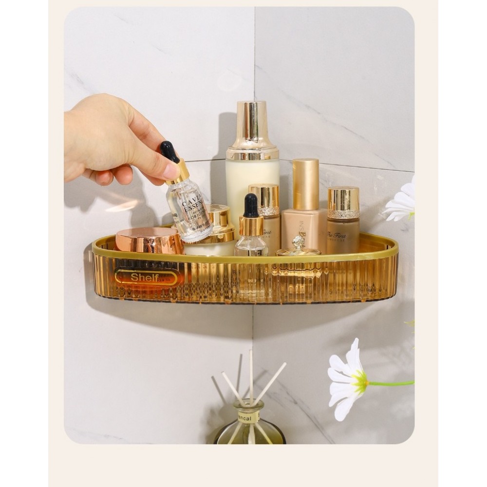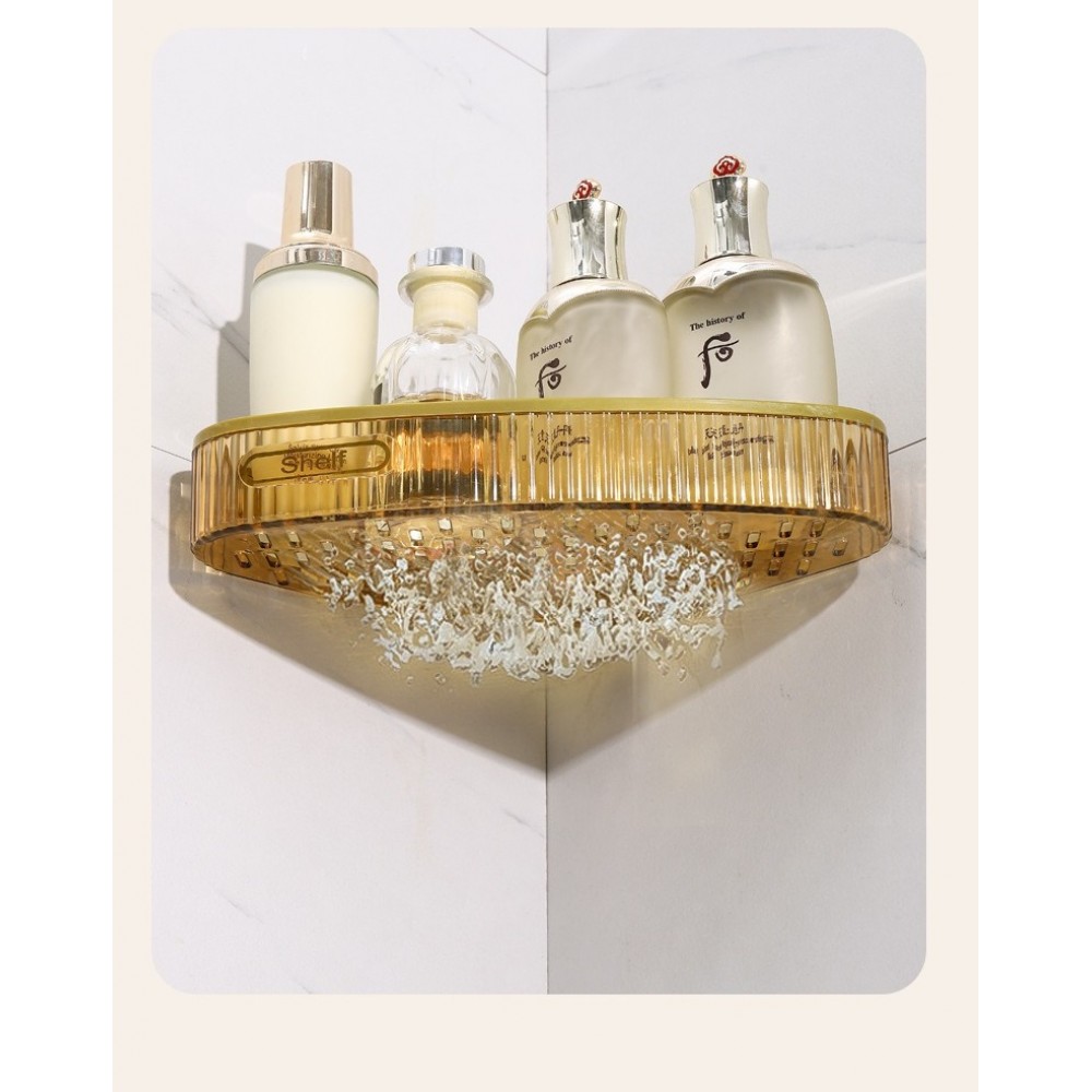 Оформить заказУгловая полка в ванную на самоклеющейся основе. Коричневая с золотым ободком