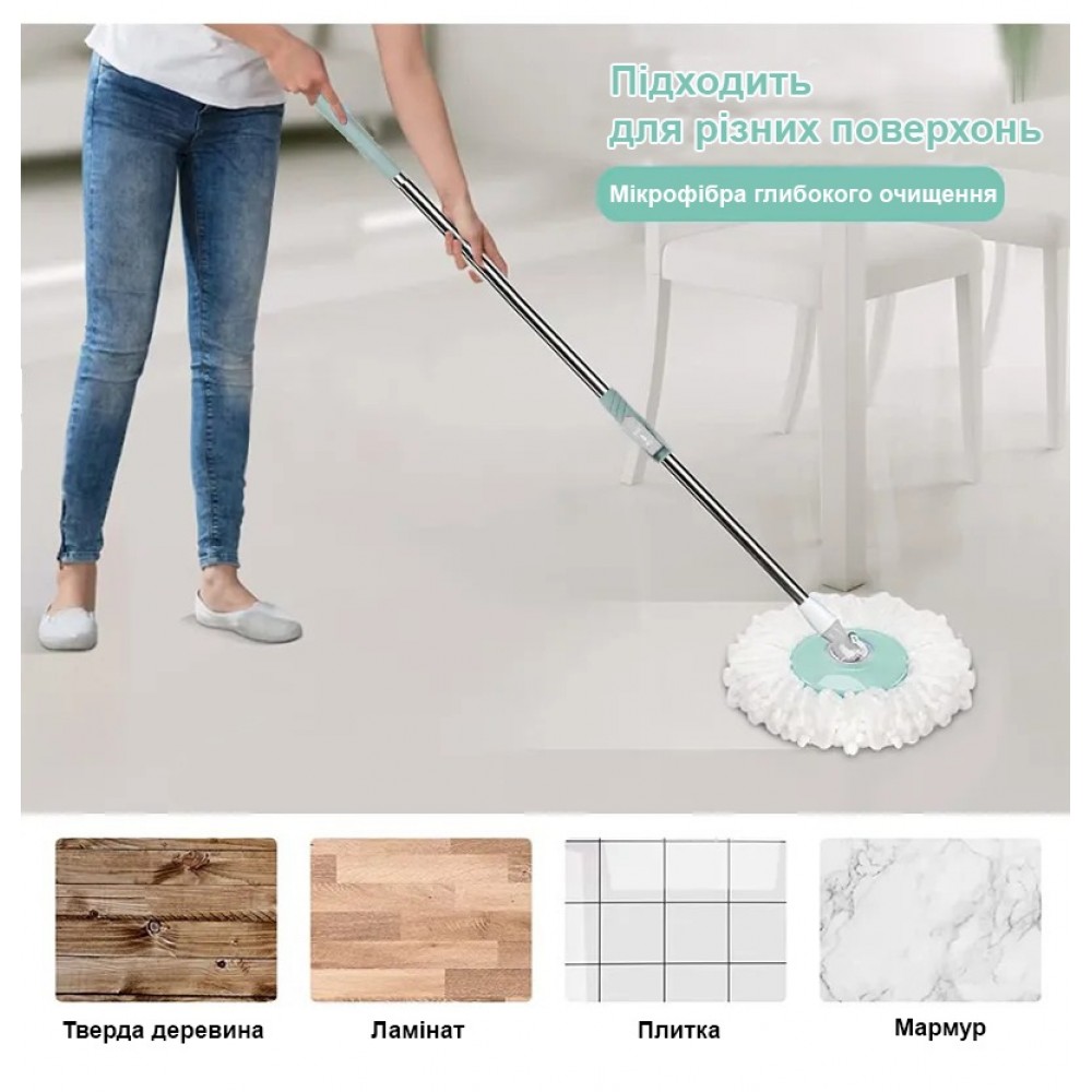 - насадка швабры из микрофибры отлично отмывает даже сильные загрязнения;