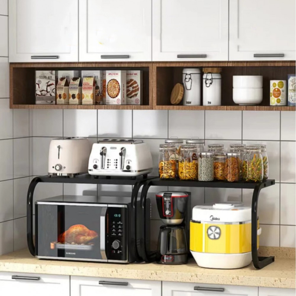 Настольная полка для хранения над микроволновой печью — идеальное решение для компактного хранения и организации пространства на кухне.