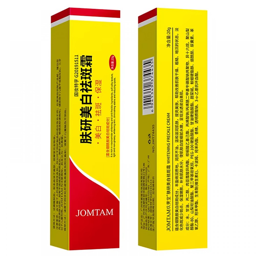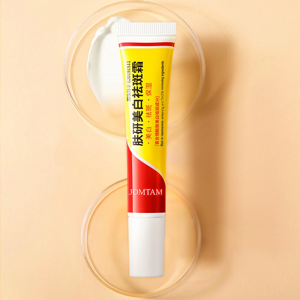 Отбеливающий крем JOMTAM предназначен для ухода за кожей с пигментными пятнами и неровным тоном. Формула крема мягко осветляет кожу, помогает уменьшить видимость тёмных пятен и придаёт лицу более ровный и сияющий вид.