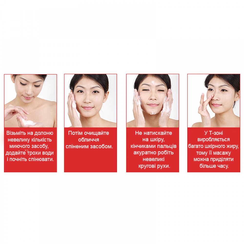 Способ применения: выдавите небольшое количество средства на ладонь, добавьте немного воды и вспеньте. Нанесите пену на лицо и начинайте очищение. Лёгкими круговыми движениями кончиков пальцев аккуратно массируйте кожу, смойте водой.