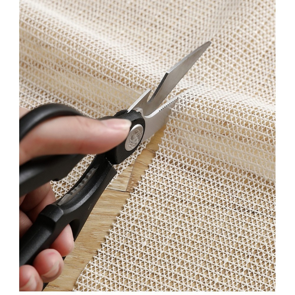 Противоскользящий коврик удерживает ковёр на месте, предотвращая скольжение, облегчает уборку пылесосом. Если использовать под простыней, вы забудете о смятом постельном белье. Коврик можно разрезать кожницами или сложить для нужного размера.