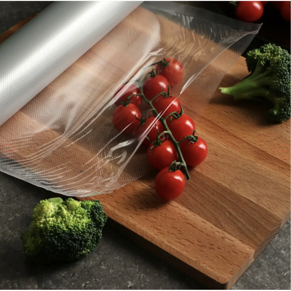 Рулон гофрированных пакетов для вакуумных упаковок, совместимых со всеми моделями бытовых вакууматоров. Рулон имеет размер 20 x 300 см и изготовлен из высококачественного материала PAPE (многослойного), известного своей прочностью, эффективной герметичностью и безопасностью для пищевых продуктов.