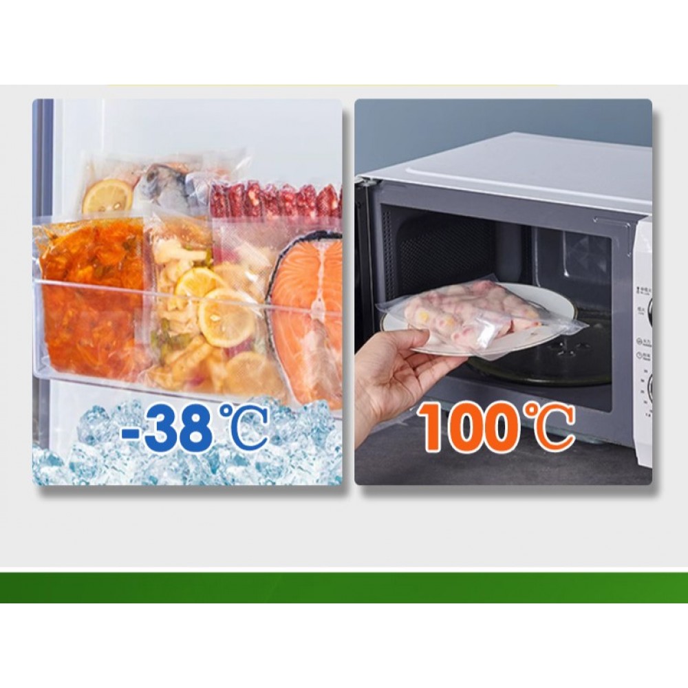 Пакеты можно разрезать до нужного размера, они многоразовые и легко моются в посудомоечной машине. Устойчивые к экстремальным температурам от -38 °C до +100 °C, они идеально подходят для заморозки, приготовления sous-vide, хранения в холодильнике или транспортировки в гигиенических условиях.