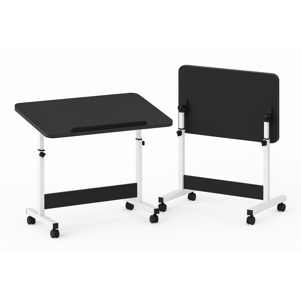Универсальный мобильный стол подойдёт для работы, учёбы и отдыха. Оснащён механизмом регулировки высоты и наклона столешницы до 90°, что позволяет удобно настроить его под индивидуальные потребности. Столешница выдерживает повседневную нагрузку, а колёсики обеспечивают лёгкое перемещение.