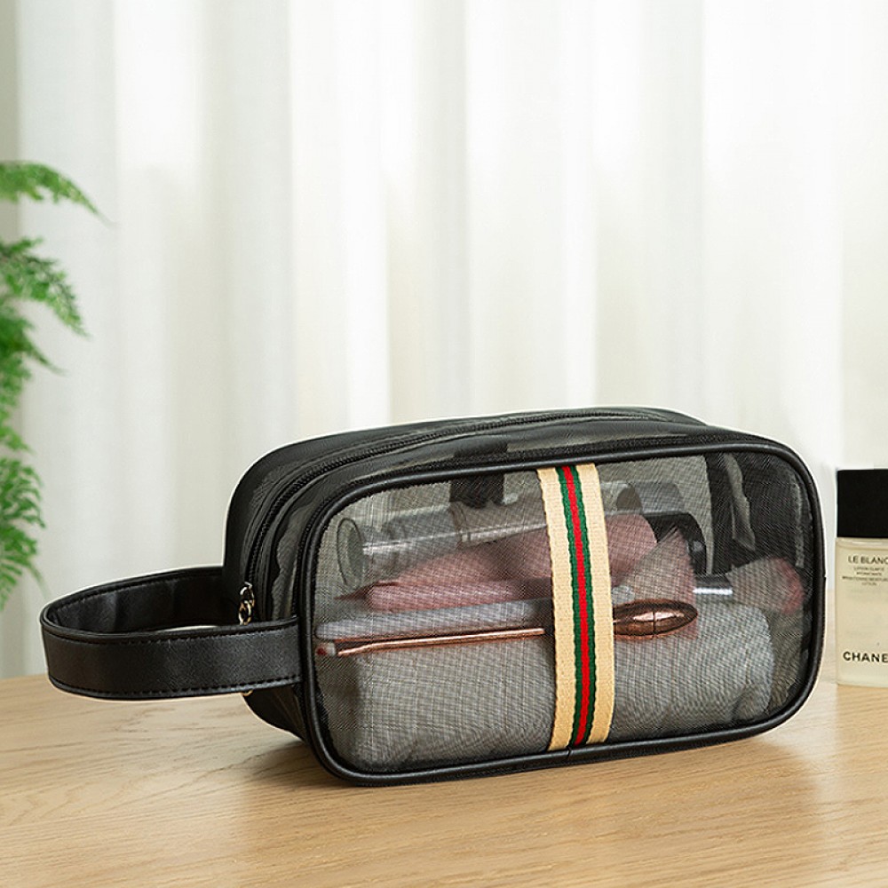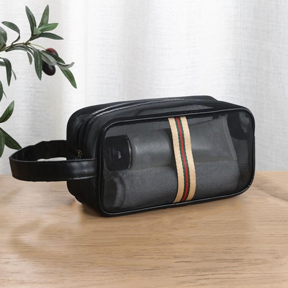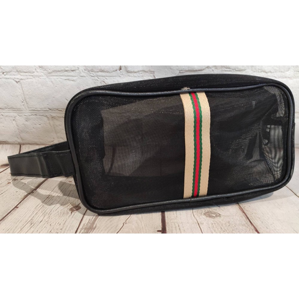 Оформить заказПортативная черная дорожная косметичка из сетчатого материала на молнии с ручкой