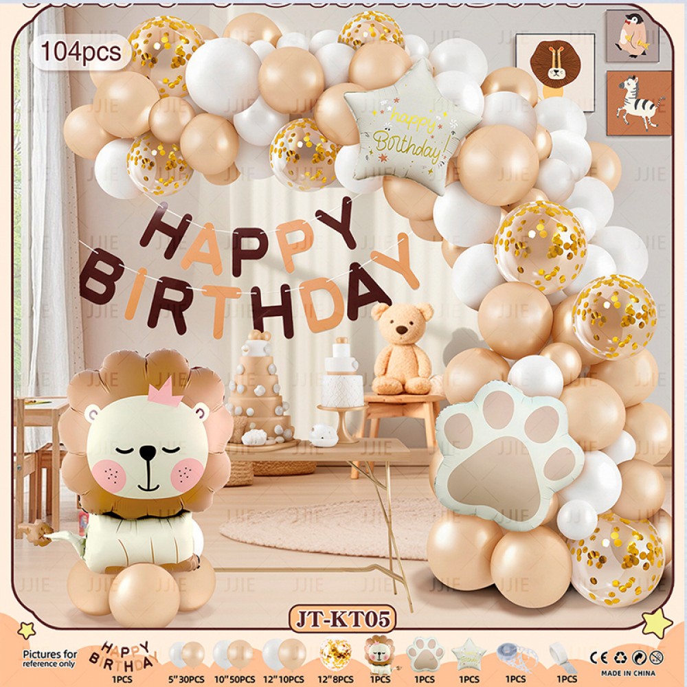 Оформить заказНабор надувных шариков Happy Birthday с мультяшным персонажем, 104 шт. Лев