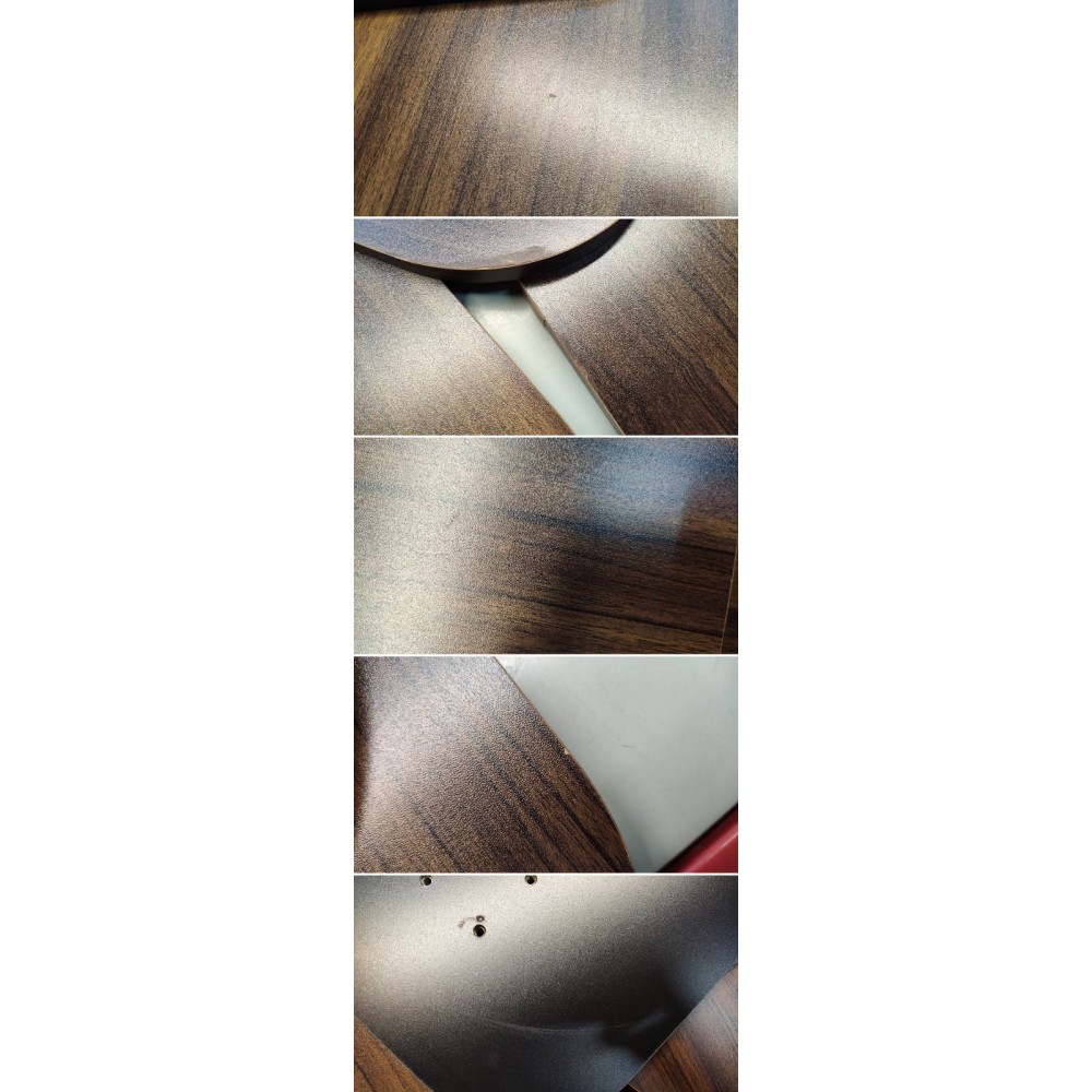 примеры уценки: сколы, дефекты, потёртости на лицевой стороне столешницы и ноги.