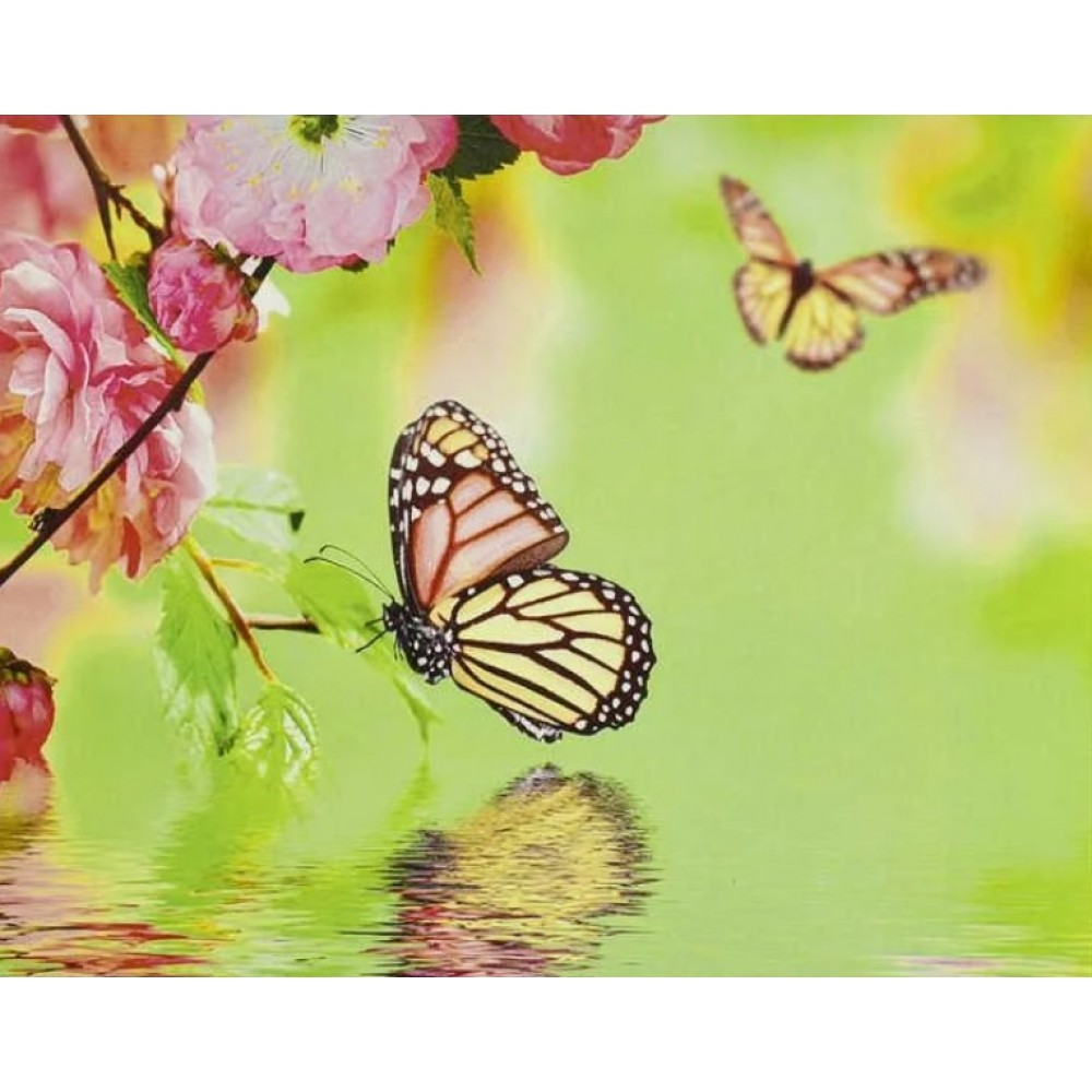 Оформить заказАлмазная мозаика "Бабочки на цветках дерева", картина стразами. 20*30 см